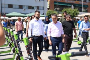 Kreu i Komunës së Tetovës, Bilall Kasami sot ka prezantuar 100 trotinet të rinjë elektrik me të cilët fillon një epokë e re e lëvizjes urbane në Tetovë.
