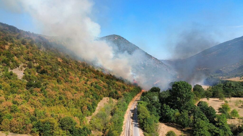Një zjarr i madh ka përfshirë malin afër rrugës që çon për në fshatin Radushë duke rrezikuar kështu shoferët me vetura pasi zjarri ka përfshirë dy anët e rrugës.