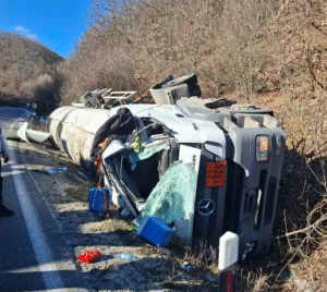 Ministria e Punëve të Brendshme (MPB) njofton publikun se aktualisht trafiku është ndërprerë në rrugën drejtë pikës kufitare Strugë-Qafë Thanë për shkak se një kamion cisternë është përmbysur në rrugë.