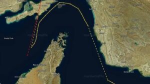 Gjurmimet tregojnë se anija ka qenë e ankoruar pak më shumë se 25 km larg bregut të Emirateve të Bashkuara Arabe nga 5 deri më 7 prill, ndoshta duke pritur momentin për të kaluar.