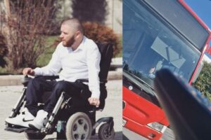 Burhan Bekteshi, është person me invaliditet i cili muaj më parë ka filluar të punojë. Transportin publik të Shkupit e ka të vetmen alternativë që të mbërrij deri në vendin e tij të punës.