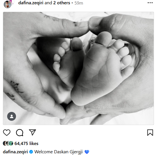 Dafina ndau me ndjekësit e saj në Instagram, lajmin e bukur se në jetë ka ardhur djali i saj i parë, të cilin e ka pagëzuar me emrin unik Daskan Gjergji, shkruan portali rtv21.tv