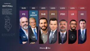 Sipas exit polit nga Albanian Post përkthyer në madnate, Edi Rama ka fituar mbi 79 mandate ndërsa Sali Berisha 54 mandate.