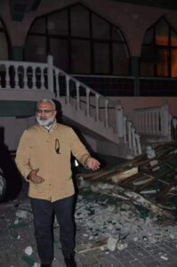 Në këto momente dramatike, imami i xhamisë ka shpëtuar vetëm falë fatit, teksa objektet e rrëzuara nga era brenda oborrit krijuan çaste tmerri, por ai arriti të dalë pa lëndime.