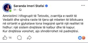 “Ky është një realitet i hidhur që tregon qartë një sistem drejtësie të kalbur dhe të kapur. Kur drejtësia vonohet, ajo shndërrohet në padrejtësi”, ka shkruar Imeri Stafai.