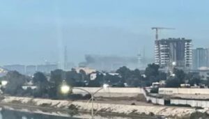 Një raketë goditi ndërtesën, duke shkaktuar tym që u pa të ngrihej nga ndërtesa e ambasadës, raportoi Reuters, duke cituar burime, pa dhënë detaje mbi dëmet.