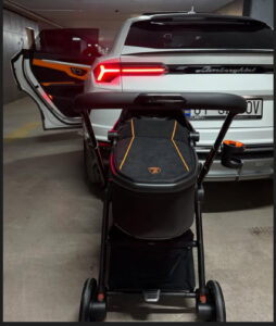 Ylli i estradaës ndau me ndjekësit se ka blerë një karrocë të veçantë për të birin nga lloji ‘Silver Cross Automobil Lamborghini Reef Al Arancio’, që kushton mbi katër mijë euro.