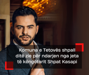 Komuna e Tetovës ka njoftuar se e hëna, 1 dhjetor 2025, do të jetë ditë zie në gjithë territorin e saj, pas ndarjes nga jeta të këngëtarit të mirënjohur tetovar Shpat Kasapi.