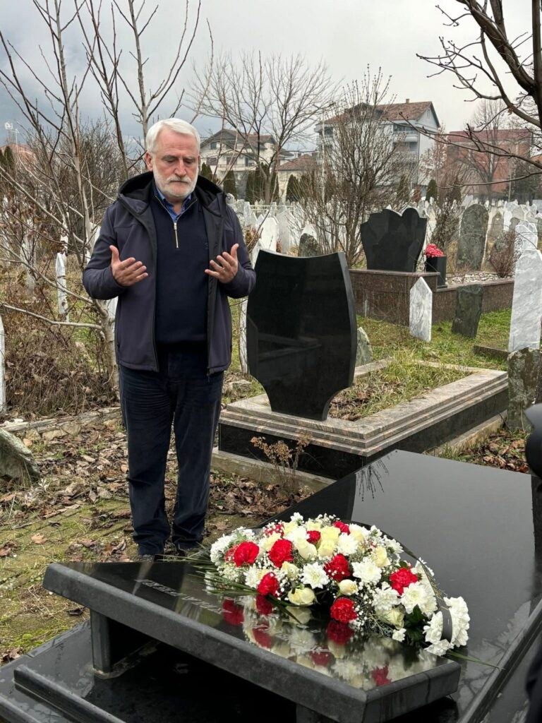 Me këtë rast, Kryetari i PDSH-së z.Menduh Thaçi bëri homazhe dhe vendosi një kurorë me lule tek varri i të ndjerit.