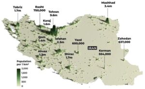 Shumica e termocentraleve ndodhen pranë qendrave të mëdha të popullsisë dhe zonave industriale. Pjesa më e madhe e popullsisë së Iranit jeton në gjysmën perëndimore të vendit, me Teheranin, Mashhadin dhe Isfahanin si tre qytetet më të mëdha.