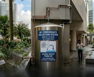 Në qytete si Tirana apo Durrësi, ku lagështia gjatë verës është e lartë, sasia e ujit që rrjedh nga tubat e kondicionerëve të pallateve është masive. Në vend që të laget rruga apo kalimtarët, mbledhja e këtij uji për vaditjen e ballkoneve apo pastrimin e ambienteve të përbashkëta do të ishte një hap i thjeshtë drejt modelit të Singaporit.