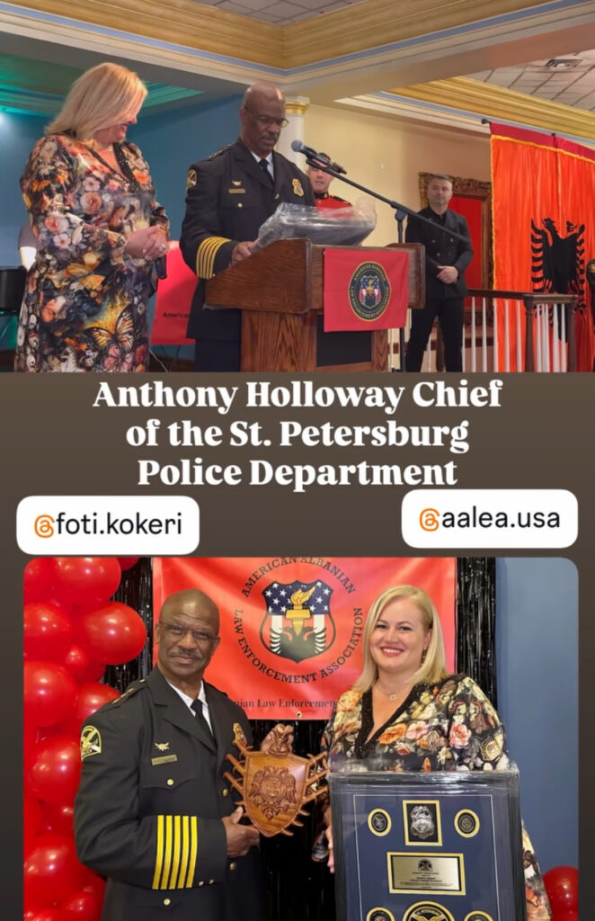 Në një ceremoni solemne, ku morën pjesë figura të rëndësishme të sigurisë publike amerikane, përfshirë edhe Anthony Holloway, Shefi i Policisë së St. Petersburg, zonja Kokeri u përgëzua për rolin e saj inspirues dhe bashkëpunimin e nivelit të lartë me organizatat ligjzbatuese në SHBA.