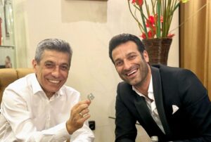 Tenori Ramë Lahaj i dhuron Izet Mexhitit një filigran me hartën e Kosovës