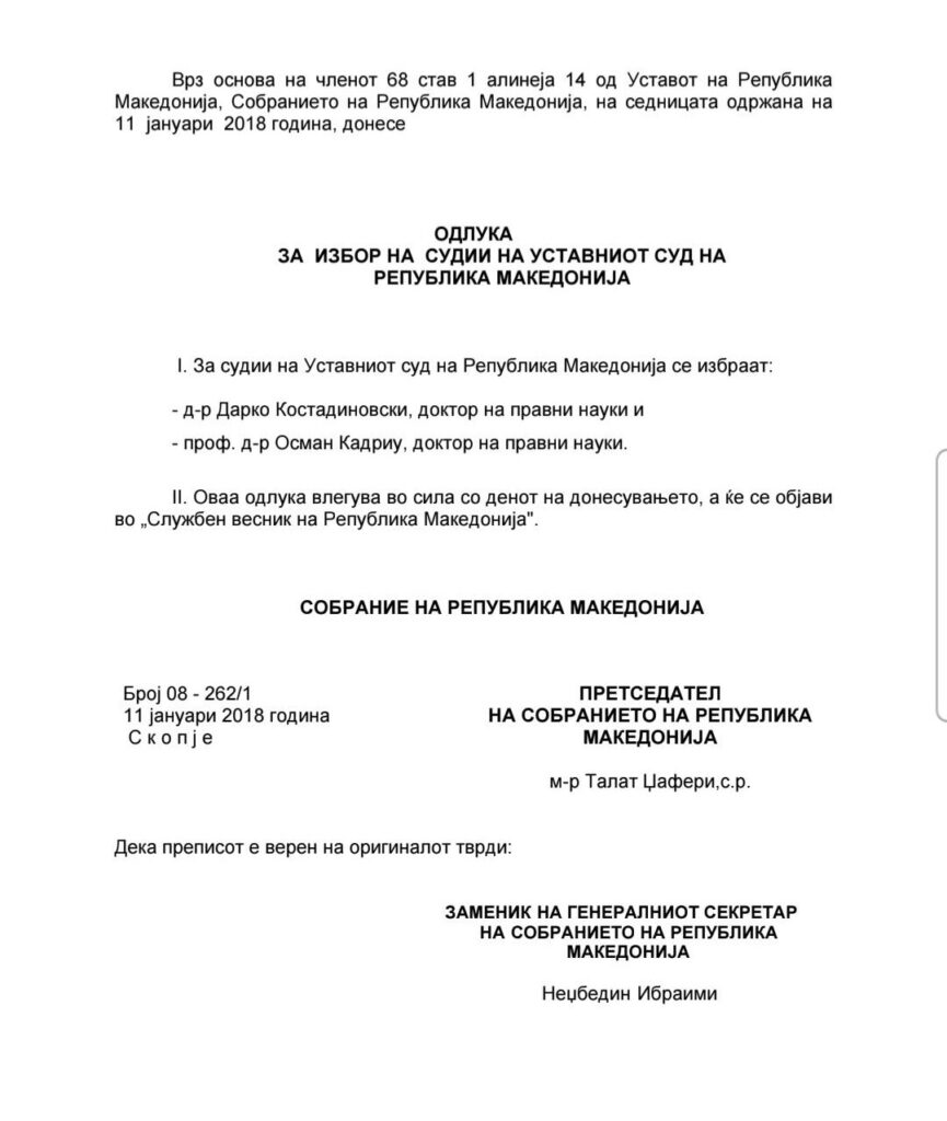 Qëndrimet e fundit të Kryetarit të Gjykatës Kushtetuese të Maqedonisë, Darko Kostadinovski kanë ngjallur reagime të shumta politike në vend.