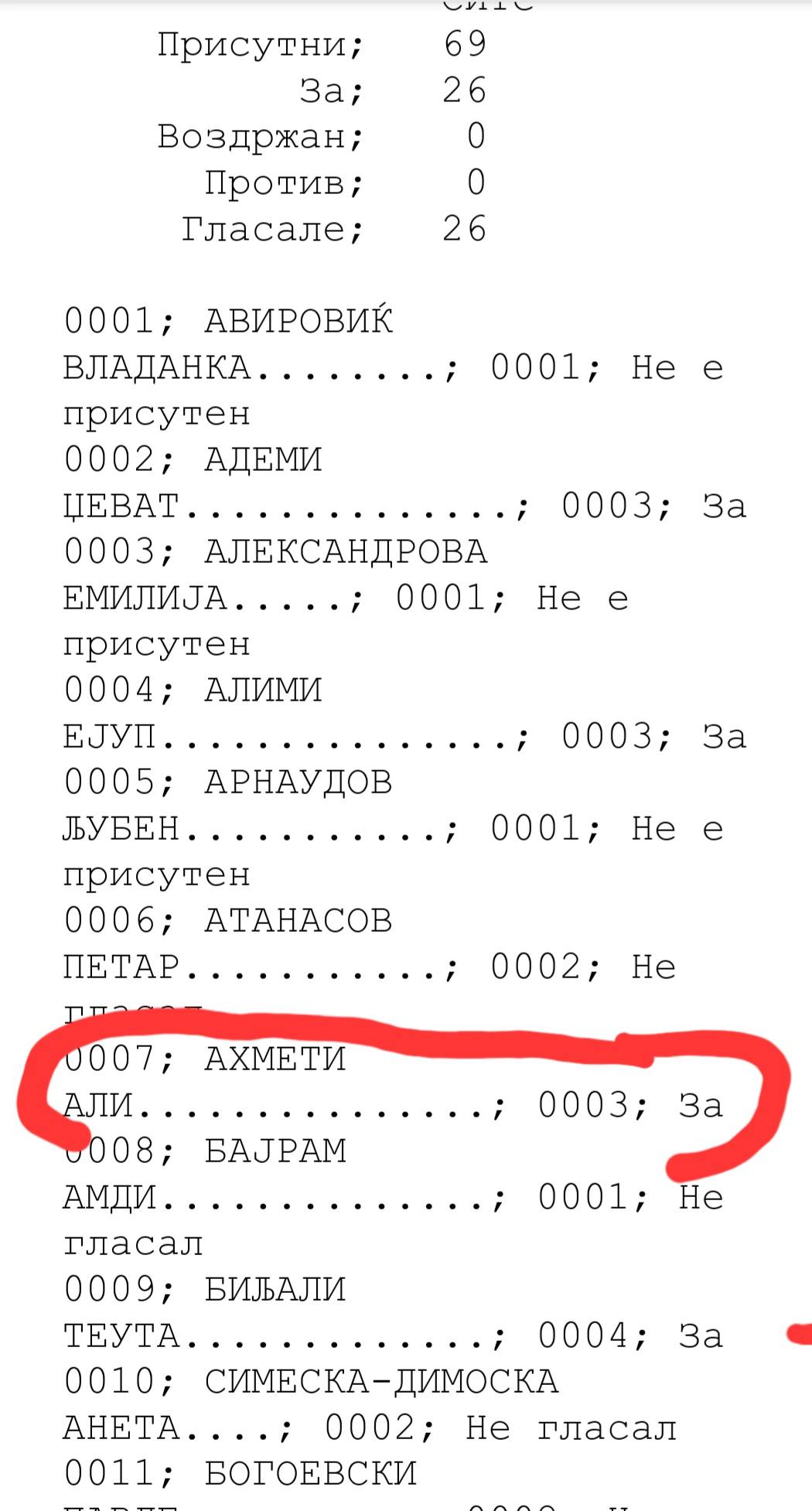 Sipas deputetes Imeri. kreu i BDI-së Ali Ahmeti ka ardhur për dy vjet ka shku vetëm 2-3 herë në mbledhje dhe në rastin e votimit të Darkos ka shkuar apostafat në parlament për ta votuar.