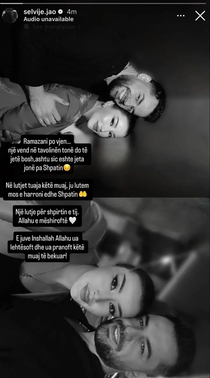 “Ramazani po vjen… një vend në tavolinën tonë do të jetë bosh, ashtu siç është jeta jonë pa Shpatin,” ka shkruar Selvija mbi imazhin e saj, duke e bërë të qartë se dhimbja e humbjes është ende e freskët dhe e thellë.