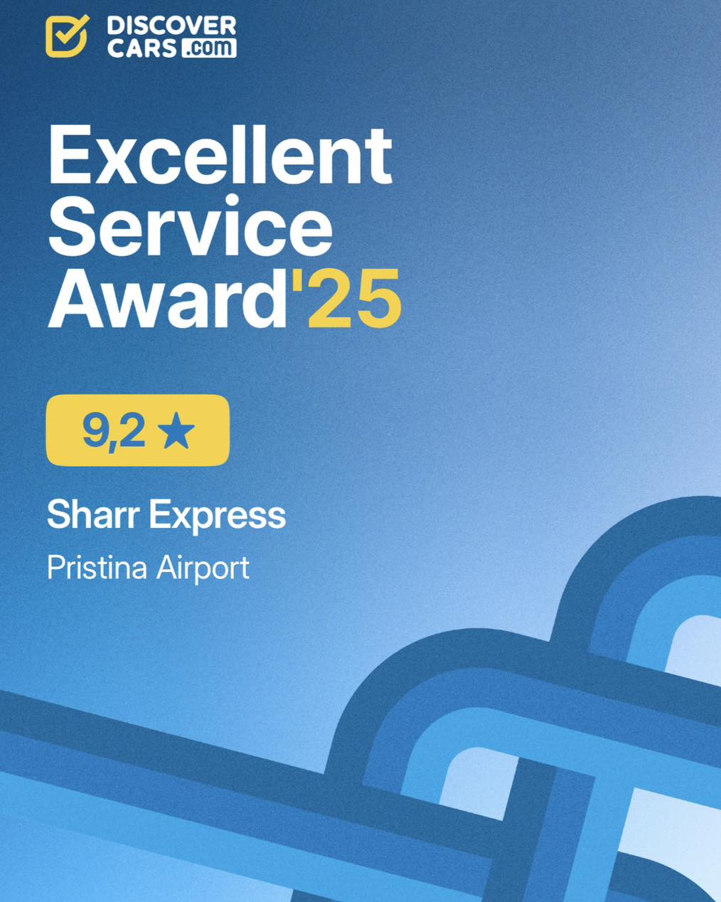 Falë besimit dhe vlerësimeve tuaja, Sharr Express është shpallur fituese e çmimit Excellent Service Award 2025 nga DiscoverCars.com – duke u renditur ndër më të mirët në Maqedoni, Kosovë dhe Shqipëri