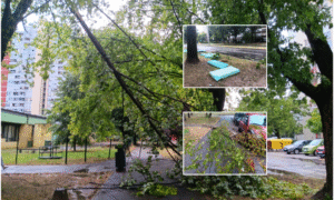 Në lagjen Utrine të Zagrebit, gjithçka është plot me mbeturina dhe degë, dhe njerëzit po dalin jashtë për të kontrolluar makinat e tyre.