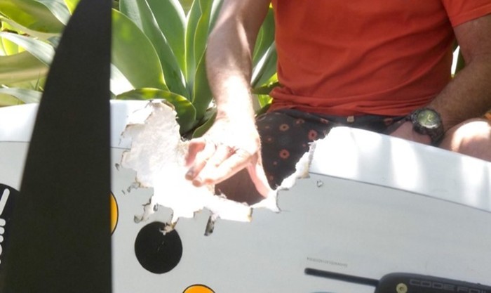 Pamjet e ngarkuara në Swellnet treguan dërrasën duke u thithur nën sipërfaqe, e ndjekur nga spërkatje dramatike uji me shkumë ndërsa një zog fluturonte sipër tij.
