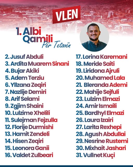 Një listë e mundshme e kandidatëve të koalicionit VLEN për Këshillin Komunal të Tetovës ka rrjedhur në media dhe rrjete sociale, ndërsa jozyrtarisht pritet që bartës i saj të jetë Albi Qamili.